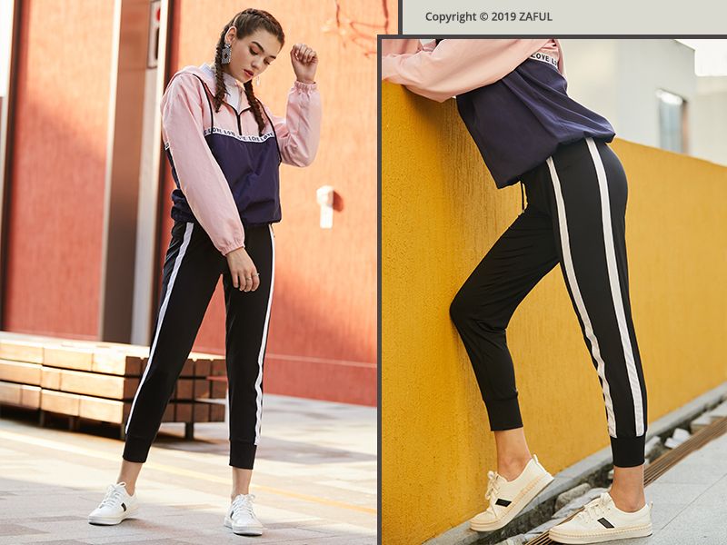 - Contrast Drawstring Sports Jogger Pants -