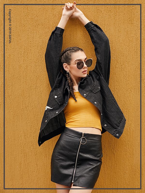 - Zip PU Leather Mini Skirt -