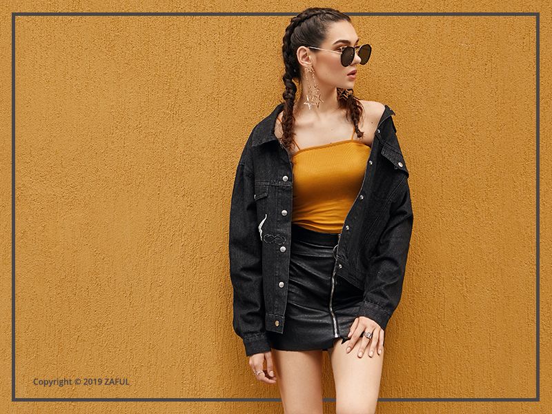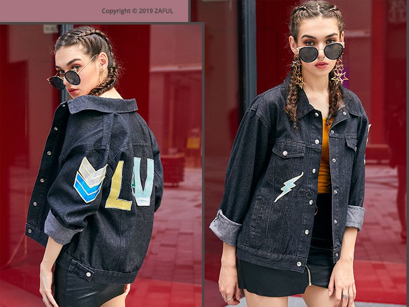 - Letter Patched Loose Denim Jacket -